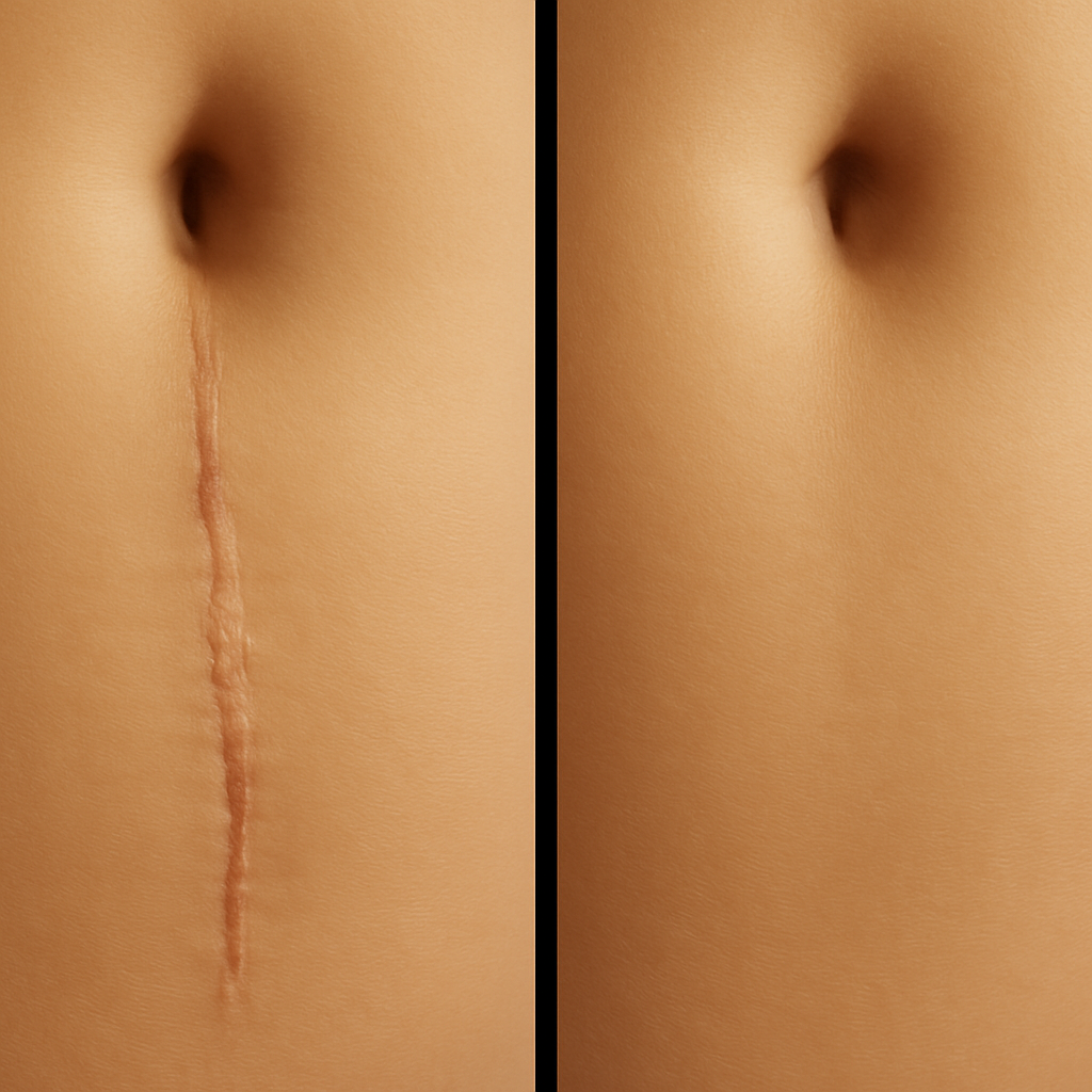 A medical treatment that reduces raised keloid scars by flattening, softening, and minimizing their appearance through advanced dermatological techniques.